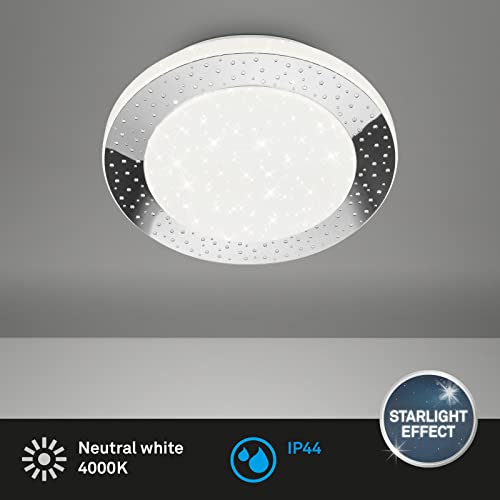 BRILONER - Plafoniera LED con decorazione a stella, Plafoniera LED per bagno IP44, decorazione perforata, luce bianca neutra, Ø280 mm, bianco cromato, 3693-018