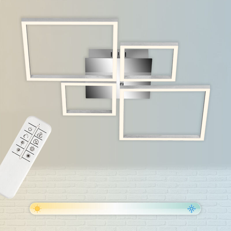 Questa lampada da soffitto a LED con quattro moduli LED quadrati (uno dei quali ruotabile), realizzata in metallo-plastica, catturerà molti sguardi nelle vostre stanze grazie al suo design semplice la plafoniera é molto versatile, utilizzabile ad esempio come lampada da soggiorno o da camera da letto Grazie alla regolazione continua della luminosità e al controllo della temperatura di colore (2.700 Kelvin - 5.000 Kelvin, da bianco caldo a bianco freddo), è possibile adattare le condizioni di illuminazione individualmente in base alle proprie esigenze e necessità Con un risparmio energetico di 38 Watt, i quattro moduli LED offrono una potenza luminosa totale di 4.000 lumen, creando così una luce davvero piacevole - la plafoniera ha una durata media elevata è di circa 25.000 ore Dimensioni del prodotto: 750 x 467 x 75 mm (LxWxH) Luci a soffitto, lampade a soffitto, luci soggiorno, lampade soggiorno, luci camera da letto, lampade camera da letto, luci sala da pranzo, lampade sala da