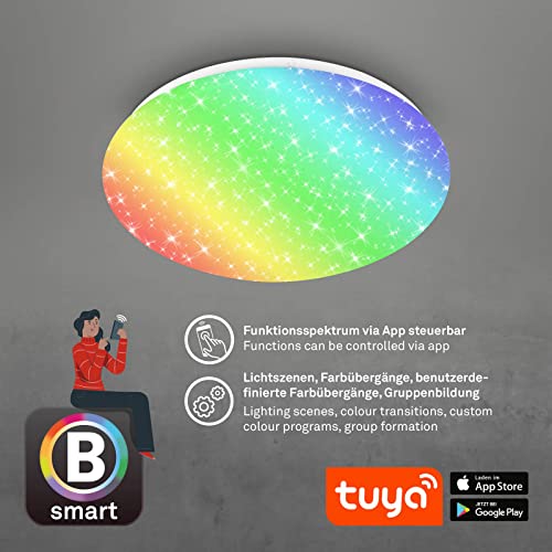 Briloner - Plafoniera LED soffitto smart, lampadario per il bagno IP44, WiFi, Bluetooth, RGB, controllo temperatura colore CCT, controllo vocale, Ø33cm.