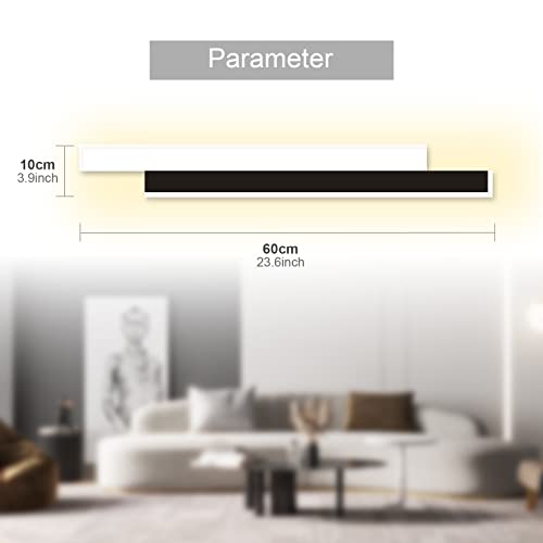 【Risparmio Energetico】 -Tensione di ingresso della lampada da parete a LED: AC220 ~ 240V, temperatura di colore: bianco caldo 3000K, utilizzando chip LED COB luminosi di alta qualità, effetto luce soffusa, basso consumo energetico, nessuno sfarfallio, protezione per gli occhi, luminosità: 1200 lumen . Dimensioni: 60 x 10 cm.