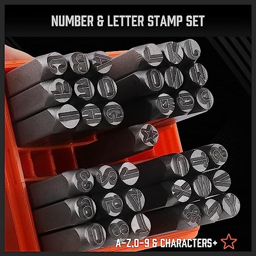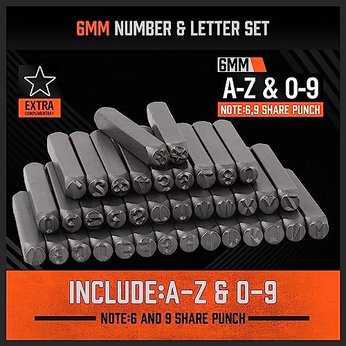BRIMIX 37 pezzi Set di timbri 6 MM (A-Z & 0-9) per metallo, pelle, legno, plastica, gioielli. Scalpello e punzoni per incidere numeri e lettere per artigianato e artigianato