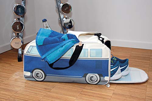 BRISA VW Collection - Volkswagen Hippie Bus T1 Camper Van Borsone per Palestra Vintage con manici e tracolla, Sacca da viaggio con scomparto impermeabile per scarpe, Borsa sportiva, Duffel bag (S/Blu)