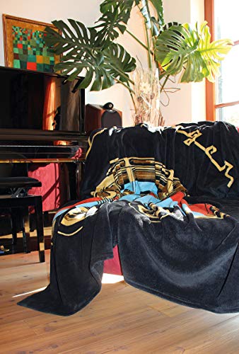 Brisa VW Collection - Volkswagen Hippie Bus T1 & Maggiolino Coperta Grande di Pile Super Morbido per Letto e Divano, Plaid Vellutato da Salotto con Sacchetto di Trasporto Come Idea Regalo (Nero)
