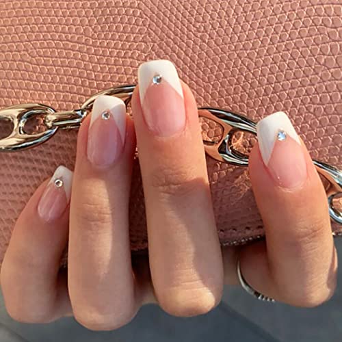 Brishow - Unghie finte a ballerina, unghie corte con french in acrilico, unghie adesive a pressione - 24 pezzi, adatte per donne e ragazze (b)