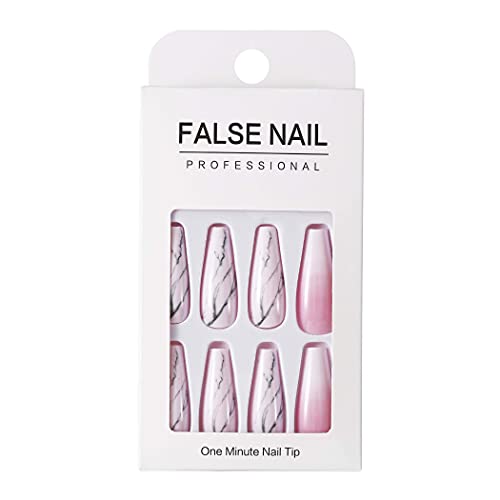 Brishow Unghie Finte Lunghe Unghie Finte Modello Marmo Stampa su Unghie Bellarina Acrilico Stick su Unghie 24pz per Donne e Ragazze