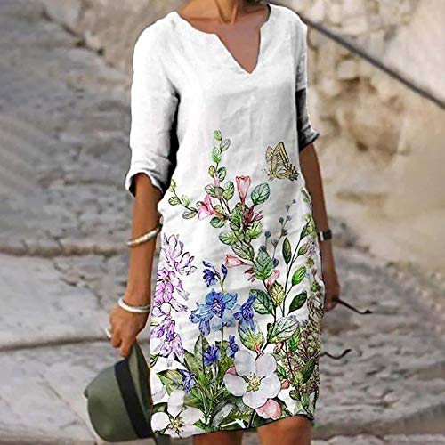 Briskorry Abito casual da donna, elegante, maniche a 3/4, per la primavera e l'estate, per la maglietta boho, per feste, maxi abito alla moda, chic e casual