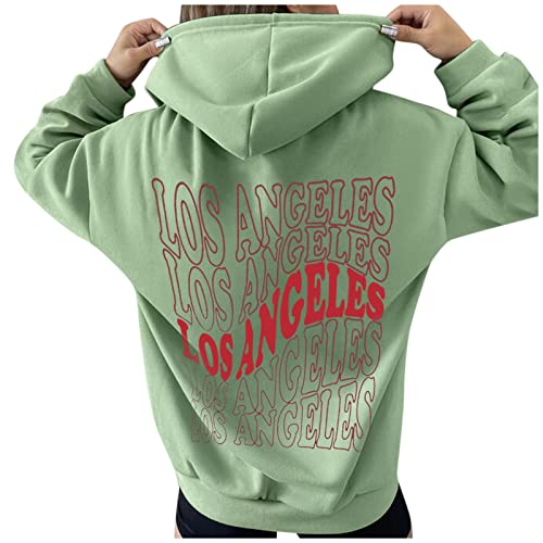Briskorry Felpa da donna con lettere stampate, per ragazze, autunno, inverno, casual, a maniche lunghe, alla moda, con coulisse e tasche, Verde 6., XL