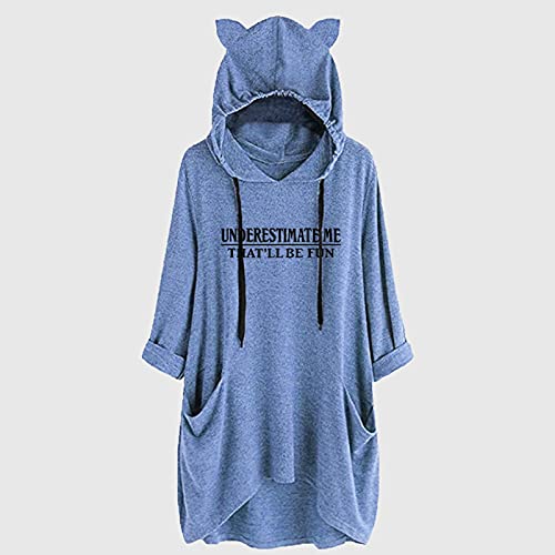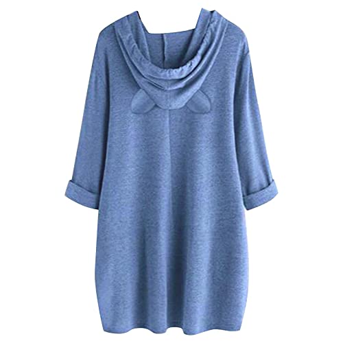 Briskorry Felpa da donna oversize con cappuccio invernale e tasca con motivo animal Graphic Tees con coulisse, Blu., XXL