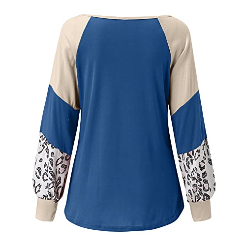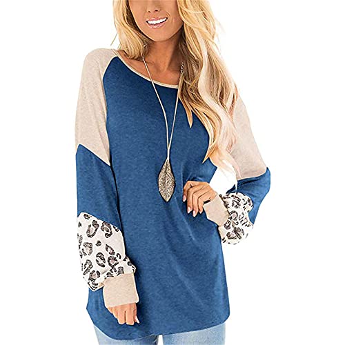 Briskorry Maglia a maniche lunghe da donna, girocollo, a righe, leopardo, a maniche lunghe, casual, rilassato, maglietta sportiva, Blu 7, XL