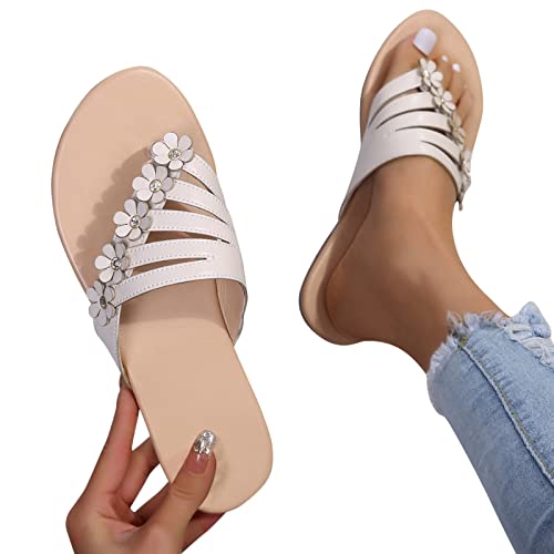 Briskorry Sandali da donna, piatti, per il tempo libero, vintage, con strass, sandali da spiaggia, sandali da spiaggia, in pelle PU, scarpe da donna