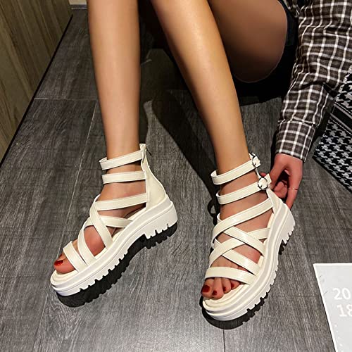 Briskorry Sandali da donna con plateau, eleganti sandali romani, morbidi e leggeri, estivi, con zeppa