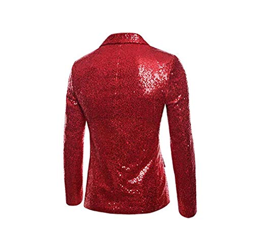 BriskyM Giacca da Uomo con Blazer con Paillettes Giacca a Un Bottone Adatta Abito da Giacca Attillato Giacca da Giacca Blazer per Discoteche, Matrimoni, Feste da Ballo per Feste (Red, XL)