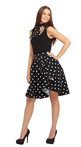 Bristol Novelty- Costume Rock And Roll | per Donna | Rosso, Pois, Colore Nero, Size 10-14, AC049E