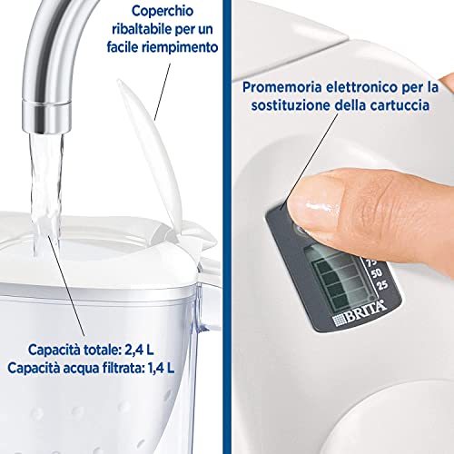 BRITA Caraffa Filtrante Marella per acqua, Bianco (2.4l) - incl. 1 Filtro MAXTRA+ per la riduzione di cloro, calcare e impurità