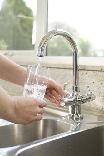 Trafsorma l'acqua di rubinetto in acqua filtrata con il miscelatore BRITA. Il rubinetto, a tre vie, è in grado di dispensare acqua calda, fredda e filtrata senza ulteriori accessori.