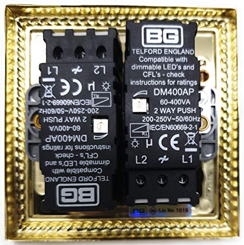 British General & Wilko doppio 400 W Dimmer in ottone georgiano, compatibile con LED dimmerabili, tradizionali lampade a filamento di tungsteno
