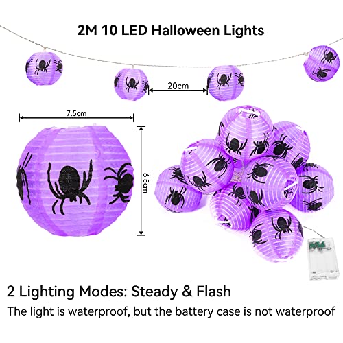 BrizLabs Catena Luminosa Halloween, 10 LED 2M Viola Ragno Lanterna Luci Stringa a Batteria Fata Luci Halloween Decorazione per Interno Esterno Giardino Festa Albero Patio Natale Festival DIY