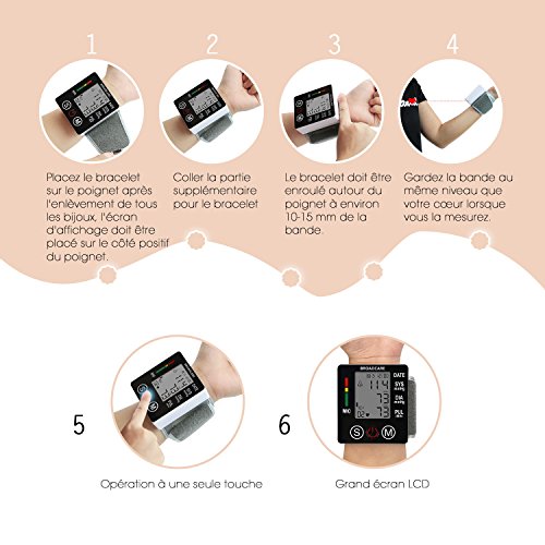 Broadcare Sfigmomanometro elettronico al polso Sfigmomanometro automatico di alta precisione Sfigmomanometro Digitale con LCD Schermo - Nero