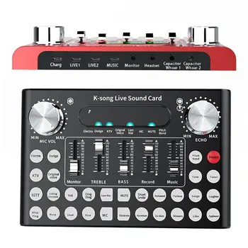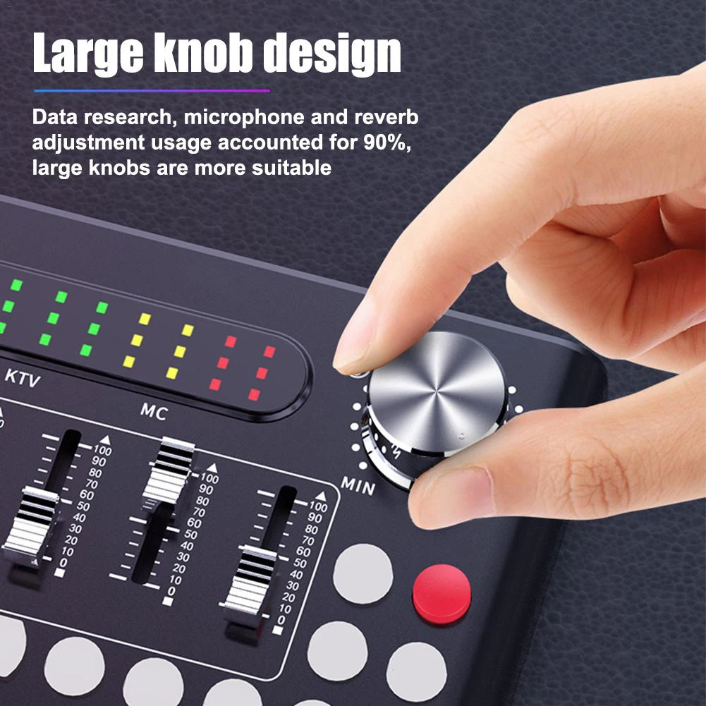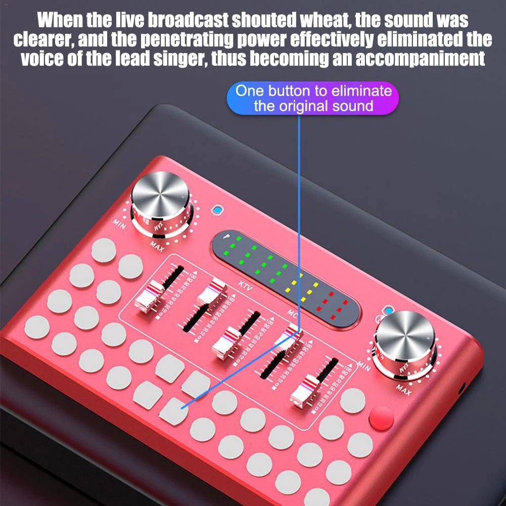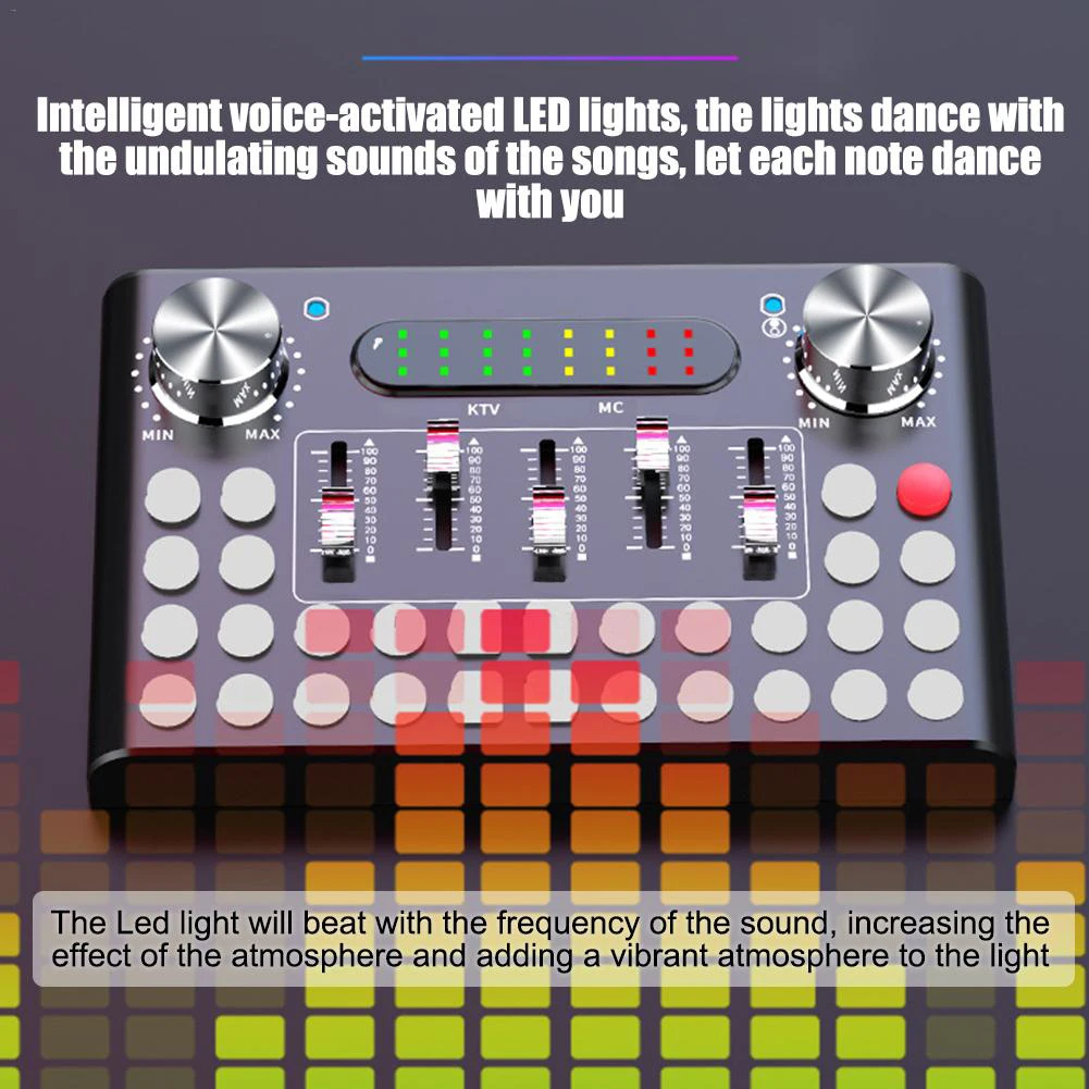 F9 Live Broadcast 18 Sound Effects Stereo Audio Sound Card with Intelligent Voice-activated LED Lights for Phone Laptop Computer