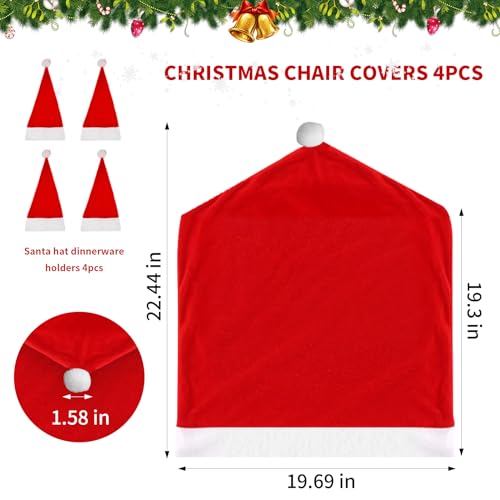 BROADREAM Coprisedie Natalizia con Schienale 4 Pezzi, Elasticizzato Universale Copri Sedie Decorazioni Natalizie Riutilizzabili per Ristorante, Cucina, Hotel, Festival
