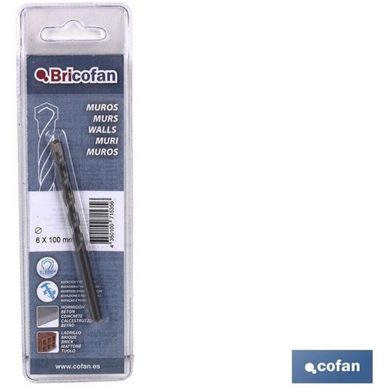 Bricofan MUROS Y PAREDES (piastra in metallo duro) per calcestruzzo mattone e pietre confezionate in blister termoformato in contenitore individuale.