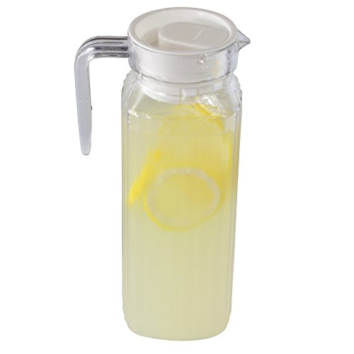 Ideale per conservare latte, succhi di frutta, acqua, frullati in frigorifero, questa brocca da 1,1 litro di plastica ha un design snello, fatto per adattarsi alla maggior parte delle porte standard del frigorifero.