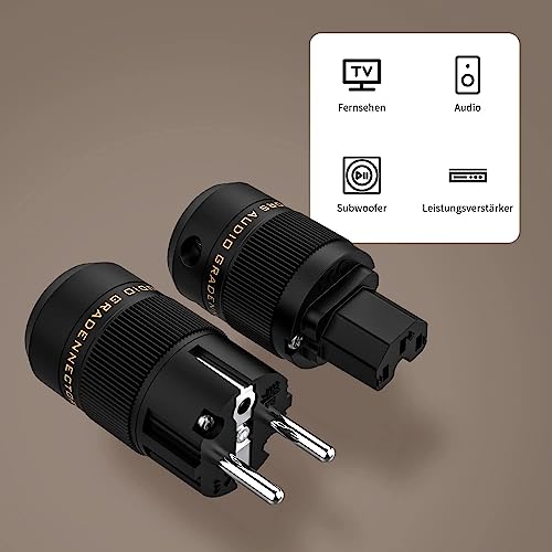 Brollitest 1 paio di spine Schuko High end Power Plug + connettore IEC nero (placcato al rodio)