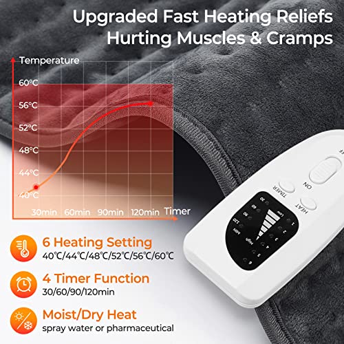 Bromose 30 x 60 cm Cuscino Termico Termoforo Elettrico Morbido con 6 Livelli di Calore Autospegnimento dopo 1.5 Ore Lavabile Allevia Dolore Muscolare per Schiena Collo Spalla