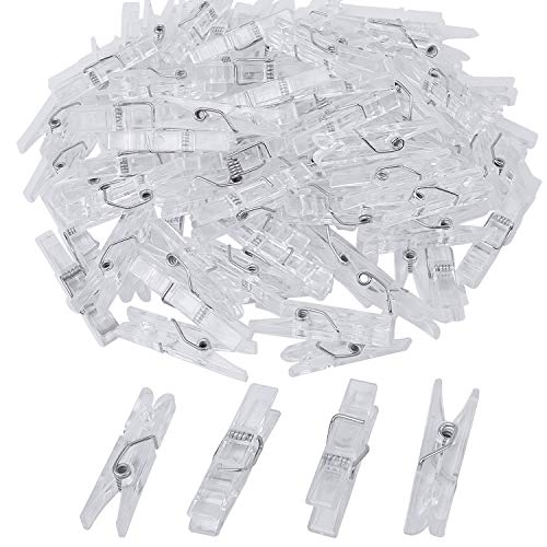 BronaGrand - Set di 100 mini mollette di plastica trasparente per fermare fogli, appendere foto, mostrare schede, per arti, mestieri, fai da te, lavori visuali, decorazioni e scrapbooking