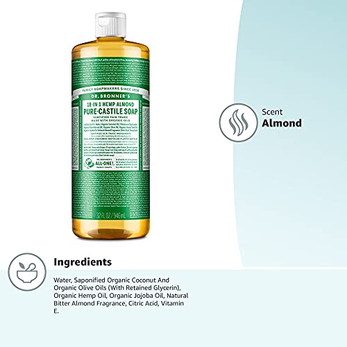 DR BRONNERS - Sapone liquido biologico alla mandorla pura-castiglia 946 ml (confezione da 1)