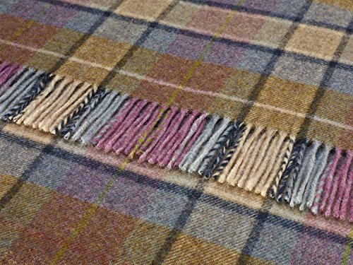 Bronte Gargrave Check Pianta erica 100% Pure Nuovo Shetland Coperta Di Lana Copriletto 185 x 140cms prodotto nel Regno Unito Lune