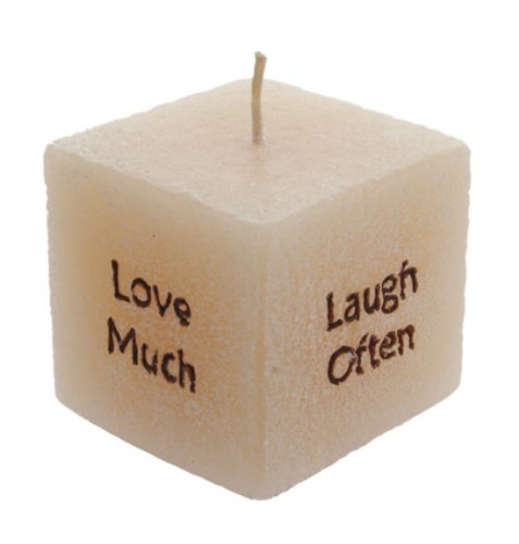 Candela cubo profumata alla vaniglia e avorio screziato.