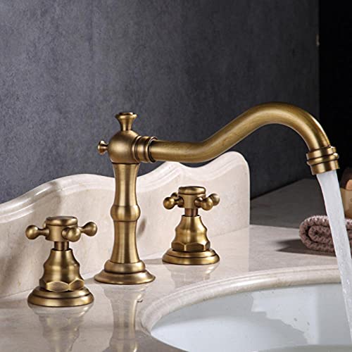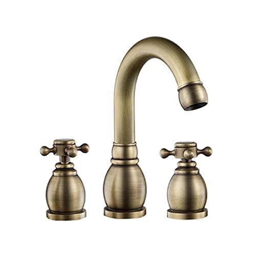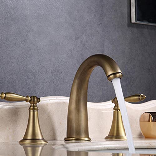 Bronzo antico 2 maniglie 3 fori rubinetto del bagno diffusore lavabo rubinetto rubinetto in ottone massiccio con tubo dell'acqua-r_Universal