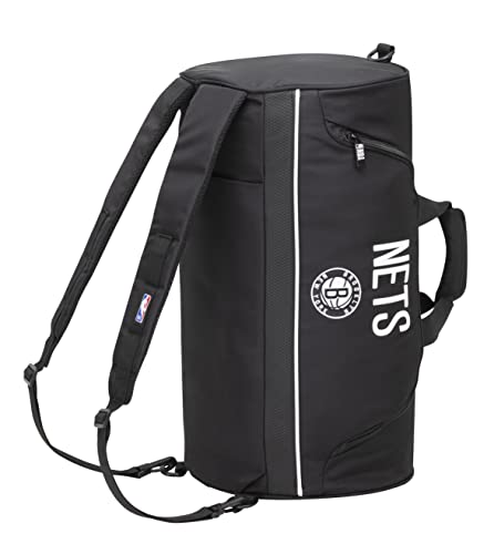 NBA, Brooklyn Neets - Borsone Palestra, Borsa Palestra per Ragazzo e Uomo con Tracolla Staccabile e Spallacci a Scomparsa Imbottiti e Regolabili - Logo Patch Ricamato, Nero - Ufficiale