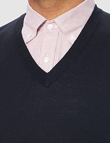 Brooks Brothers Gilet in Cotone e Seta. Scollo V, Blu, XL Uomo
