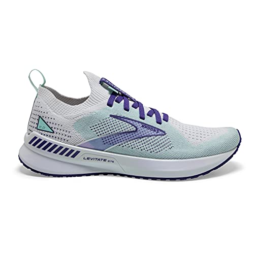 Brooks Levitate StealthFit GTS 5 - Scarpe da corsa da donna, Bianco/Blu navy/Yucca, 40.5 EU