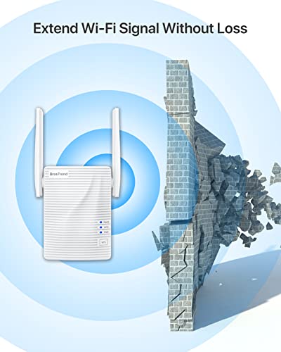 BrosTrend Ripetitore WiFi AC1200 Dual Band Ripetitore Segnale Internet, Amplificatore WiFi con 1 Porta Ethernet, Access Point Integrato, Funzione WPS, Funziona con Qualsiasi Router, Spina EU