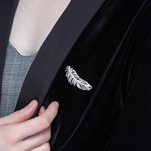 Brosway, Plume, Spilla a forma di piuma in ottone rodiato e pavè di zirconi bianchi, Lunghezza 4cm, Consegna in 48h, isole escluse