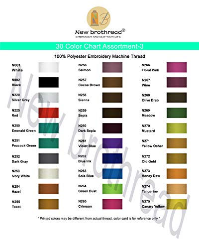 ★★★ New brothread 1000M poliestere filo di ricamo macchina è perfettamente compatibile per Brother Babylock Janome Singer Pfaff Husqvarna Bernina Macchine per ricamo e cucito. ▶▶【ASSICURARSI ACQUISTA DA "New brothread" (Venduto da) per GARANZIA originale!!!】