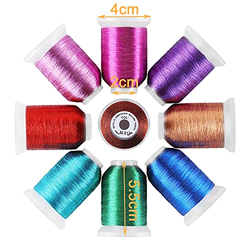 ★ Ideale peso & lunghezza - Ogni bobina ha uno spessore di 40WT e una lunghezza di 500M. Queste Metallico filo di ricamo macchina sono ideali per tutti i tipi di progetti di ricamo.