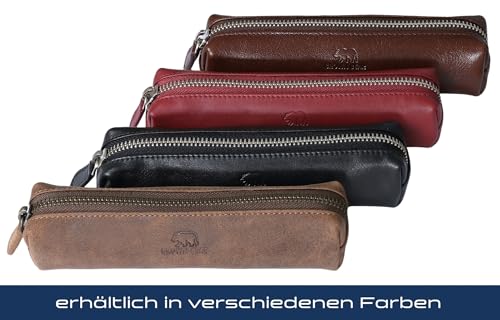 Brown Bear BB - BA 1403 - Astuccio sottile in pelle, ca. 18 x 4,5 x 5 cm, con cerniera, colore nero