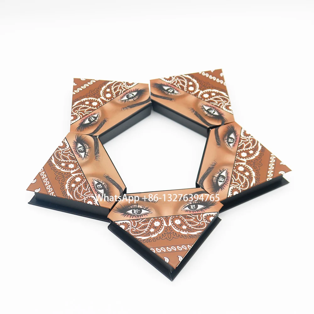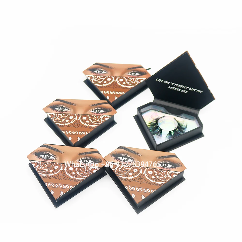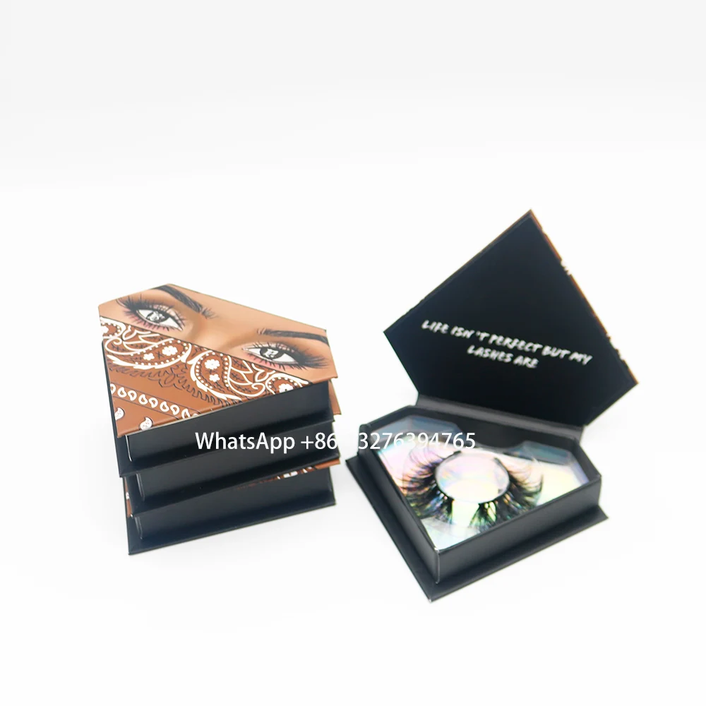 Brown Bandana Diamond Lashes Boxes Custom Lashbox Packaging With Logo Custom Eyes Skin Bandand Color Wholesale Mink Eyelashes