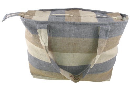 Bill Brown borsa grande in cotone per shopping o spiaggia a righe marrone pietra e grigio