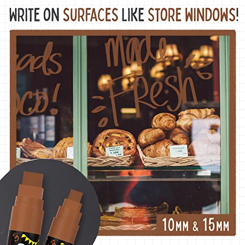 5 Brown Chalkboard Chalk Pens - Brown Dry Erase Markers for Blackboard, Chalkboard Signs, Windows, Glass | Variety Pack - Fine & Jumbo Size Ink Pen (1mm, 3mm, 6mm, 10mm, 15mm)