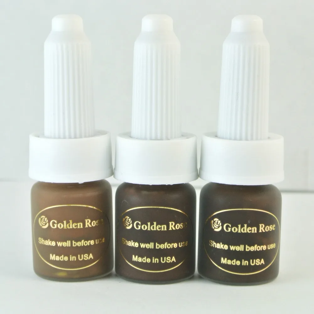 3pcs Deep dark brown Coffee Tattoo Ink Golden Rose Permanent Makeup Ink Pigment For Eyebrow Lip Tattoo with 12 Colors to Choose