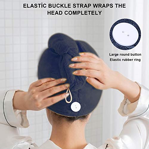 Brrnoo Asciugamano per Capelli, Cuffia Capelli Asciutti in Microfibra Asciugamano in Microfibra Turbante Super Assorbente per Capelli Ad Asciugatura Rapida con Pulsante di Design(Blu)
