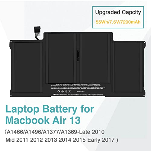 BRTONG Batteria per portatile per MacBook Air 13 pollici A1377 A1466 A1405, adatta anche A1369 A1496-12 mesi di garanzia [Li-Polymer 7.6V 55Wh]