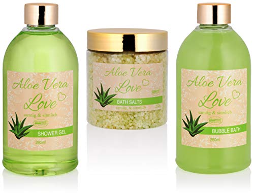BRUBAKER set da bagno 'Aloe Vera Love' presentato in una mini vasca da bagno color oro, 6 pezzi