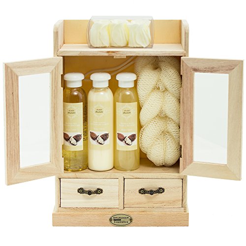 BRUBAKER set benessere beauty in comodo armadietto in legno - 15 pezzi al profumo di burro di shea e vaniglia