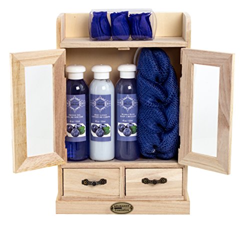 BRUBAKER set benessere beauty in comodo armadietto in legno - 15 pezzi al profumo di mirtillo e vaniglia